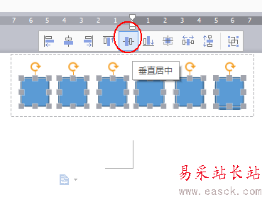 5、這時在他們的上方會出現一排屬性設置按鈕,選擇“垂直居中”即可。這樣他們就能夠對齊了。