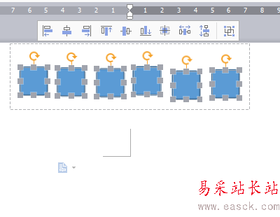 4、將這6各正方形排列成一行,用于郵政編碼的書寫。(差不多排好后,按住ctrl件將所有的正方形進行點選)
