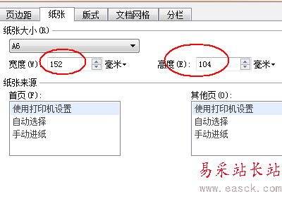 2、接下來我們是將文檔的大小設置為152*104,這個標準明信片的尺寸。“頁面設置”窗口下點擊“紙張”-將寬度設置為152mm,高度設置為104mm后點擊“確定。”