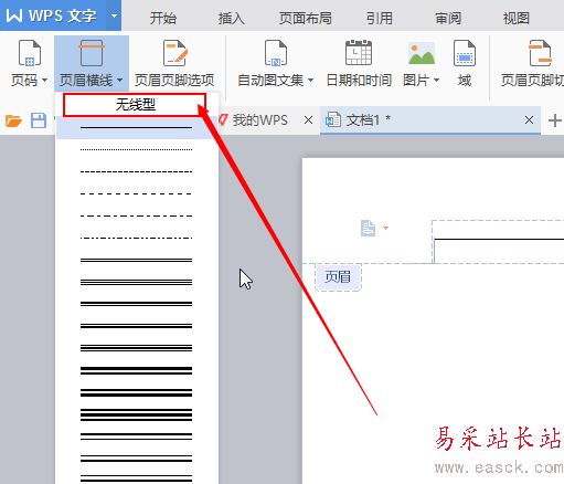 5、再來到左邊的“頁眉橫線”,如圖,鼠標點擊它。