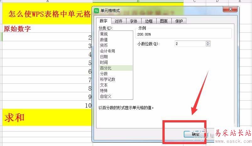 5、進入到【百分比】設置,如所示,設置小數位數。設置好后,點擊確定即可。