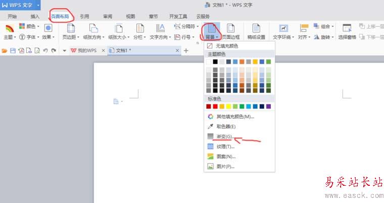 2、點擊頁面布局欄目下的背景,在下拉框中點擊漸變