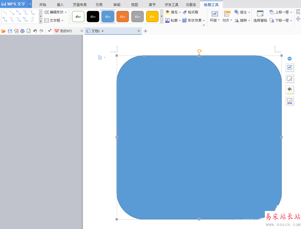 4、點擊矩形選項,在編輯工具區用鼠標左鍵拖拽,繪制一個圓角矩形,如圖所示: