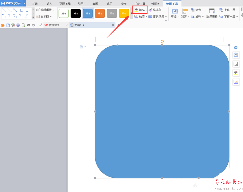 5、選擇剛剛繪制的圓角矩形,在上面找到填充選項,如圖所示: