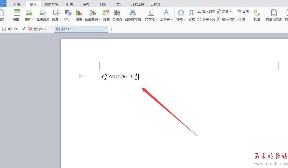 1、打開WPS軟件——插入——公式——輸入文字——上標和下標模板——輸入文字