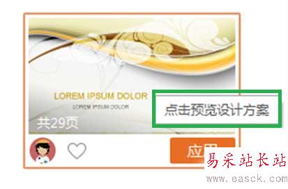 5、把光標放到選中的模板上,出現(xiàn)“放大鏡”的符號時,點擊模板,預(yù)覽設(shè)計方案。