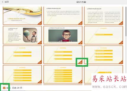 6、在新模板的29頁ppt中,點擊選擇喜歡的版式,也可以點擊左下角的全選,然后點擊右下角的“插入選中的幻燈片”。