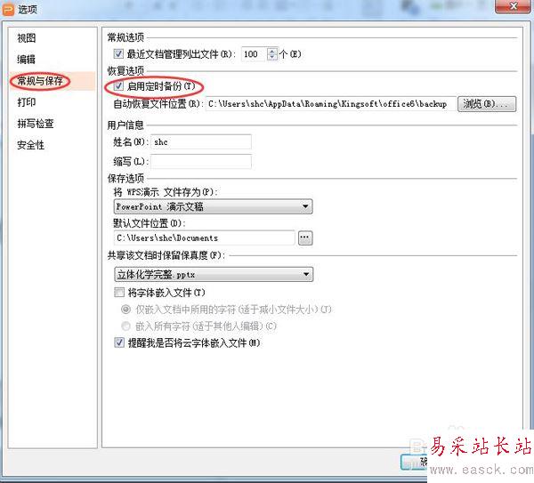 3、查看“啟用定時備份”是否勾選,如勾選,繼續(xù)下個步驟,如沒有勾選,很抱歉哦,小編不知道怎么恢復了。建議立即勾選上,下次就可以使用了。自動恢復文件位置這個路徑由個人而定,不一定要和小編的完全相同哦,這里只是參考。