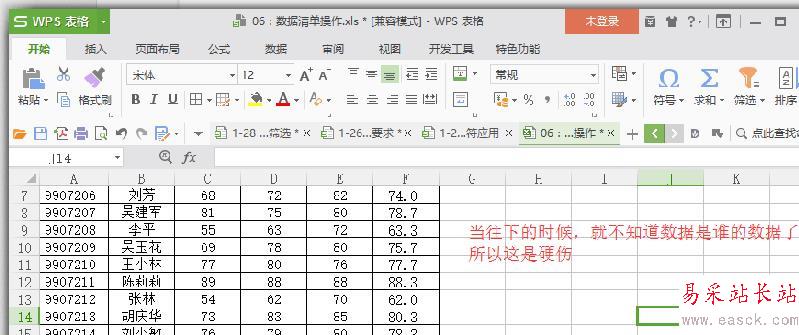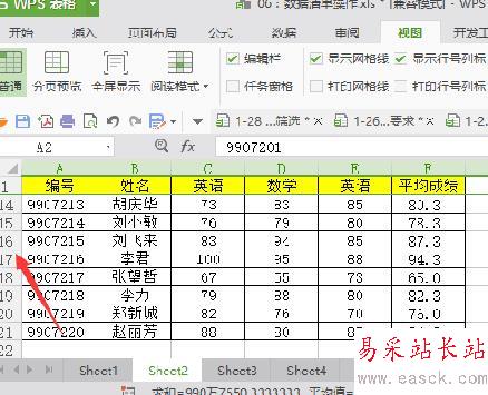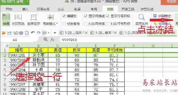 3、知道凍結命令在哪里后,我們就來對表格操作,如圖所示