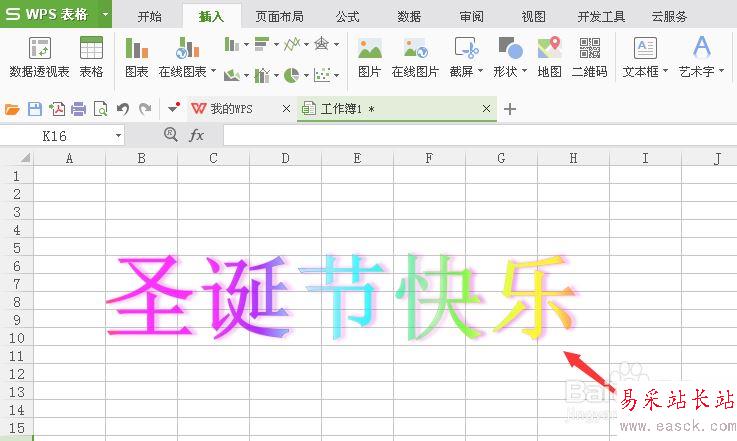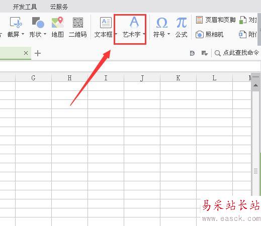 3、點擊插入,在其編輯工具區里找到藝術字選項,如圖所示: