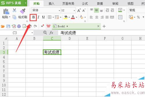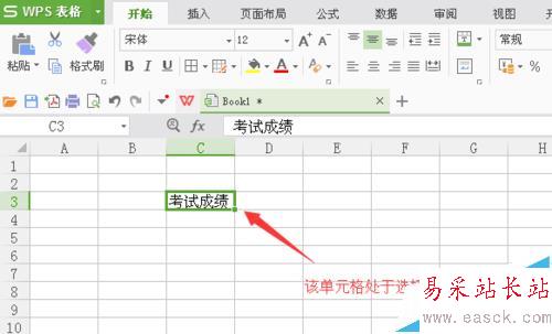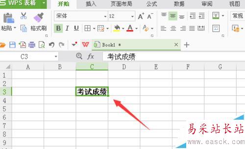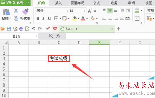 2、選擇一個單元格,并在該單元格里輸入考試成績四個字,如圖所示: