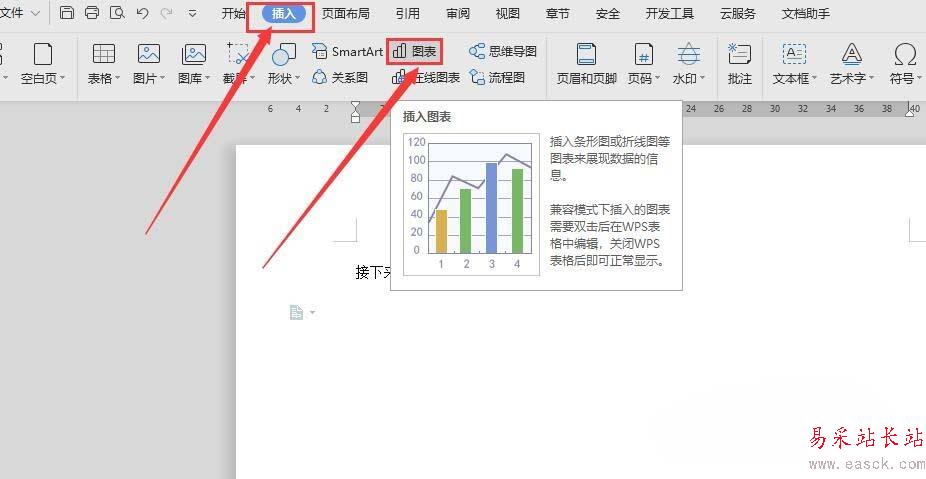 2、然后點擊菜單欄“插入”,選擇“圖表”(如下圖)