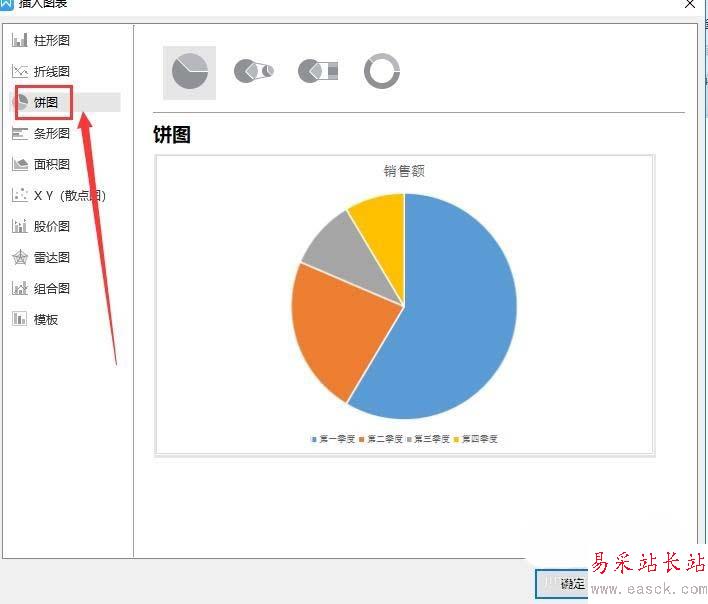 3、在彈出的對話框中,選擇“餅圖”,點擊“確定”(如下圖)
