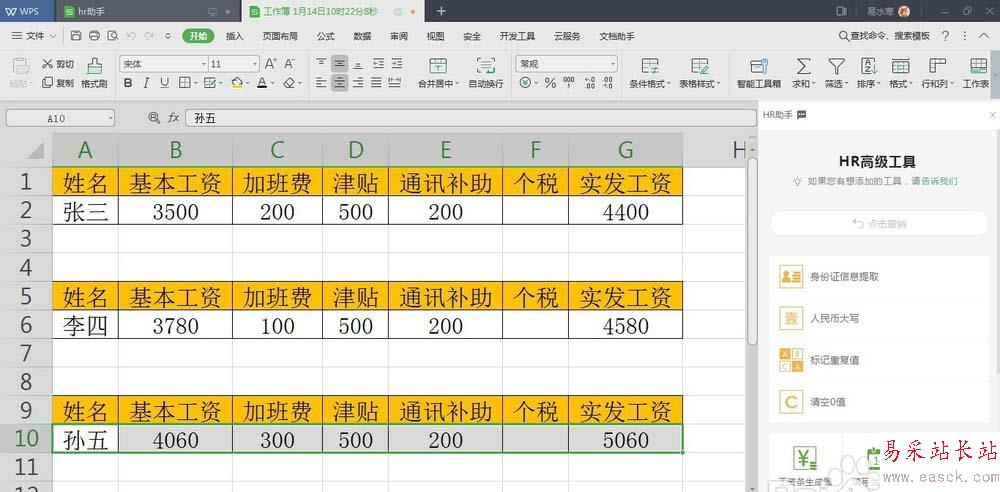 WPS中HR助手怎么提取身份證號中的信息信息?