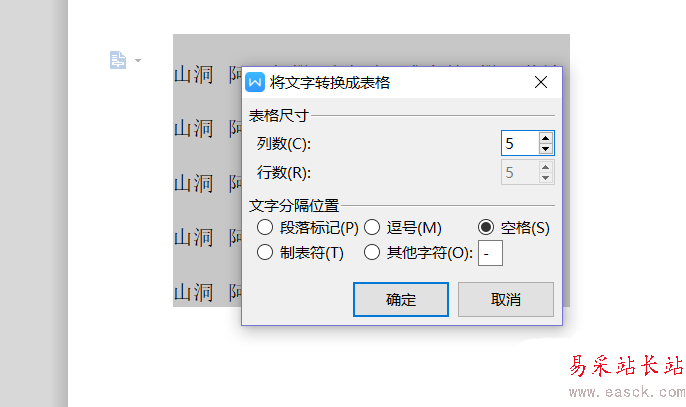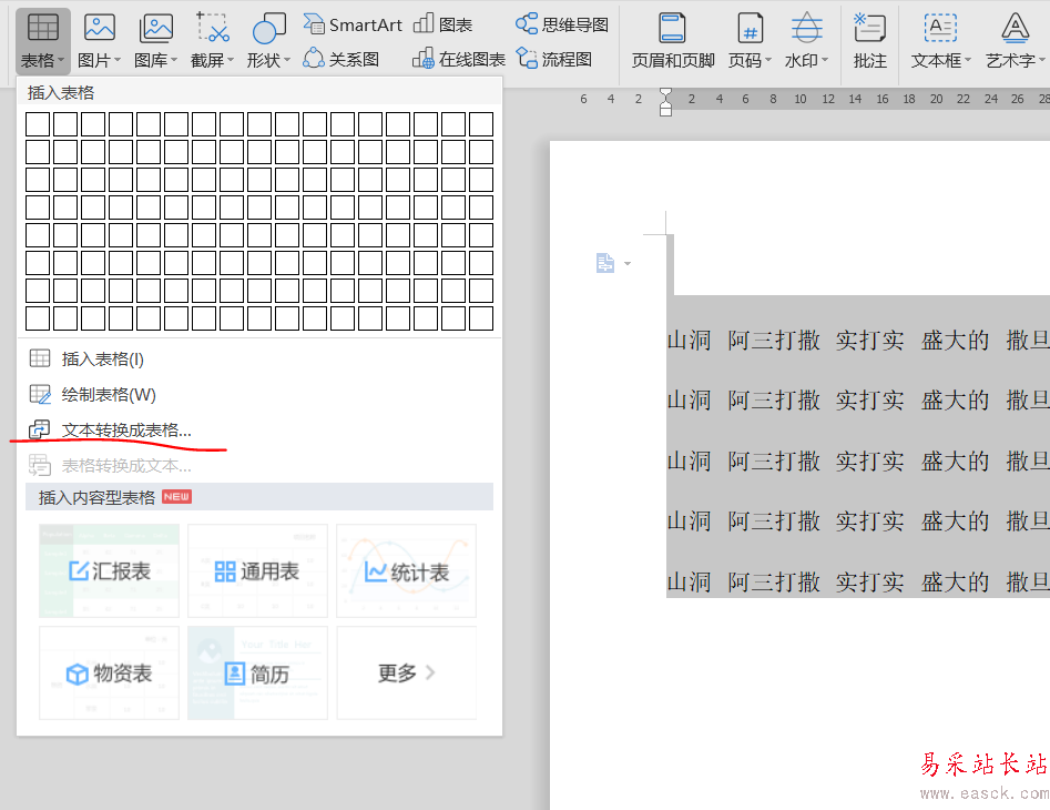 4、點擊之后可以看到一個文字插入表格