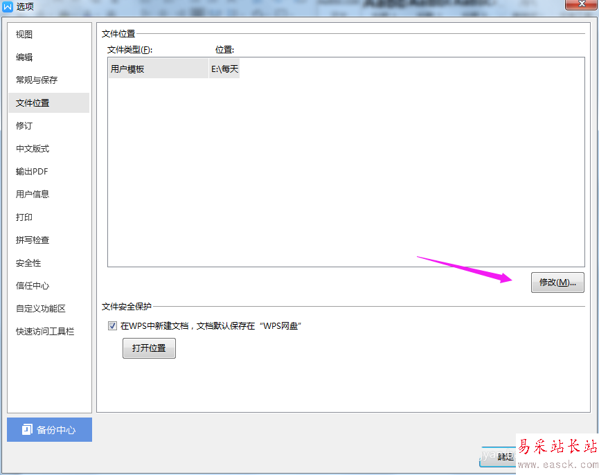 6、接著直接選【文件位置】之后,我們就要選擇【修改】下,如圖。