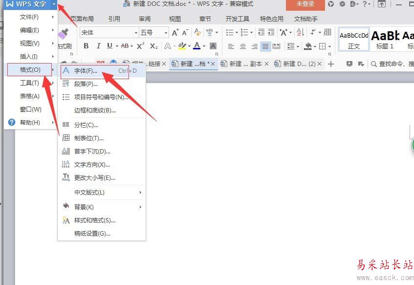 7、另外,我們也可以通過wps文字——格式——字體,這種方式也是可以打開字體界面的,如圖所示: