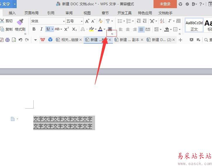 3、在這之后,我們就可以對(duì)改文字進(jìn)行設(shè)置了,首先要選中該文字,然后點(diǎn)擊開始欄下面的一個(gè)白色框,或是直接按快捷鍵Ctrl+D,如圖所示: