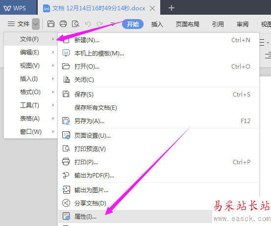 3、【文件】右側,依舊單點開下拉之后,單點開【文件-屬性】,如圖。