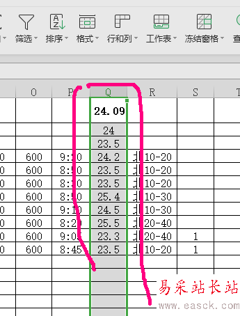 6、確定后,所選列中數(shù)據(jù)按照設(shè)定對相應(yīng)數(shù)字文字、單元框加色處理。