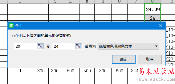 8、重復(fù)添加【介于】規(guī)則20-24和【小于】20后的單元列。