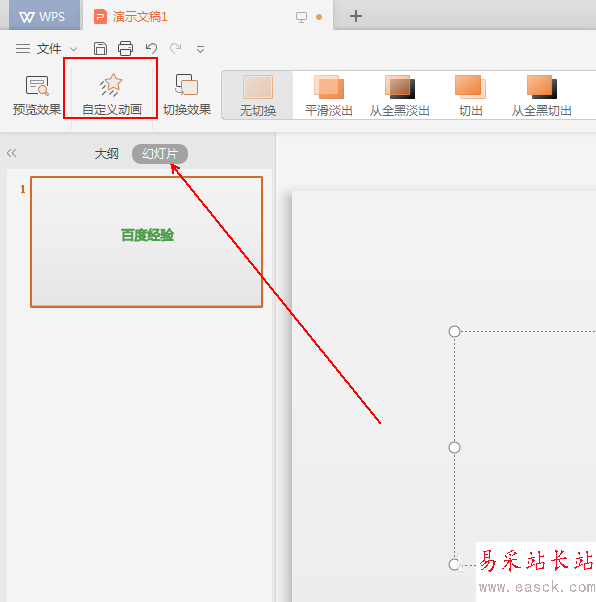 3、在【動畫】工具列表中單擊【自定義動畫】選項