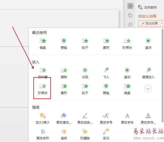 5、在彈出的菜單列表中單擊【階梯狀】選項。