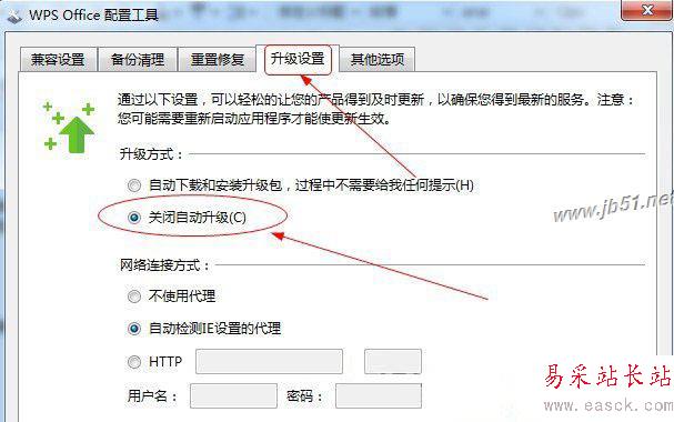 5、選擇【升級設置】里面將升級方式選擇為關閉自動升級,自己升級的話有很多的廣告以及插件,這些都是會天天彈出來,非常的麻煩;