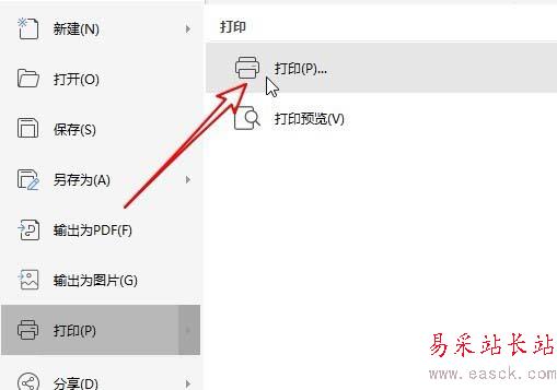 5、接著在彈出的二級菜單中再點擊“打印”菜單項。