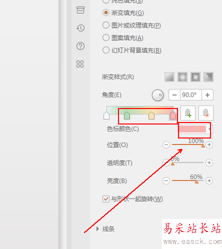 9、在下方的【角度】色條中分別點擊各個色塊。