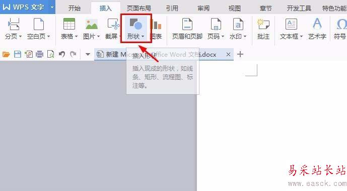 2、在菜單欄“插入”中找到“形狀”工具按鈕。
