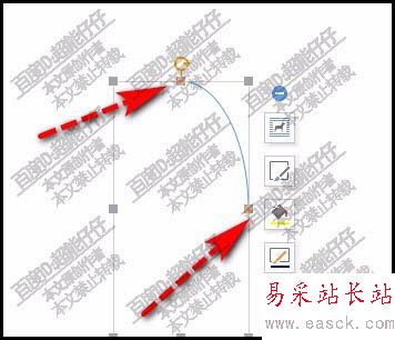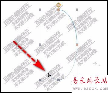 4、我們看弧線兩端,各有一個黃色的方塊,這是操作點,鼠標點住任意一個點,可以拉長。