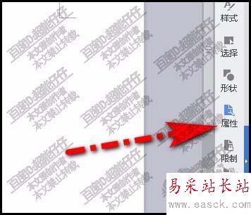 2、選中文字;再點右側(cè)的屬性,調(diào)出設(shè)置窗口
