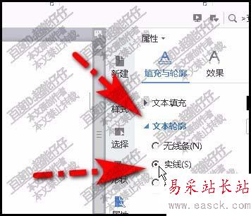 4、點開文本輪廓的選項,再點:實線,在下面即顯示出設(shè)置選項。