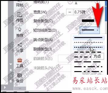 7、再點擊劃線類型下拉按鈕,再選擇虛線類型的。