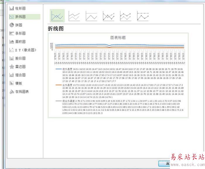 6、我們可以選擇折線圖,上方還有不同的折線圖表。