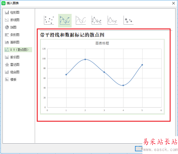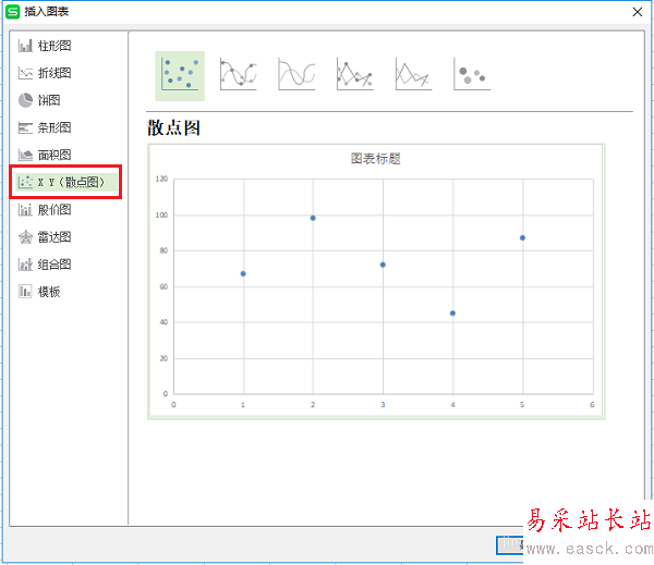 3、可以選擇繪制的散點圖樣式,這里一共有5種,根據需要選擇,如下圖所示:
