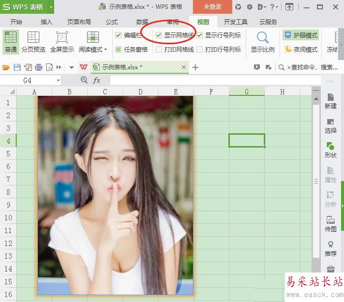 7、將‘顯示網(wǎng)絡(luò)線’前面的勾去掉,這樣就能更好的看到圖片的發(fā)光效果了(如圖)。