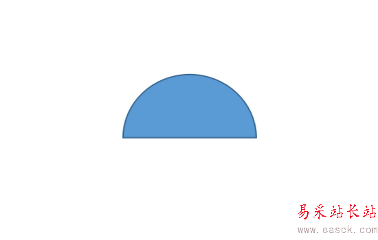 1、使用形狀工具畫一個【半圓形】,作為風車磨坊的屋頂。這個之前介紹過半圓形的畫法,這里就不再介紹。畫好后如下圖。
