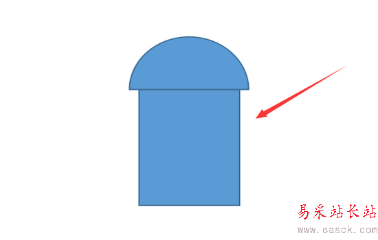 2、在半圓形下方畫出一個【長方形】,作為風車磨坊的磨坊主體,如下圖。畫的時候長方形的寬度一定要小于第一步半圓形寬度。