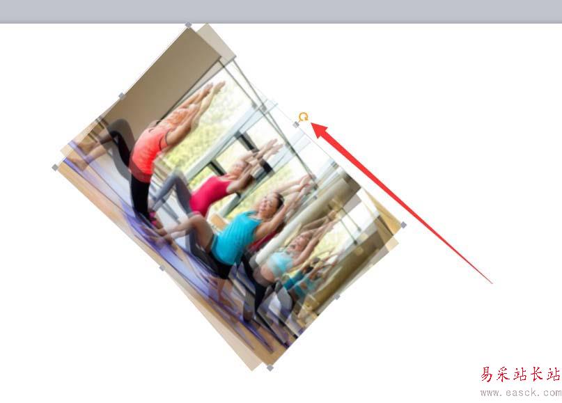 4、在選中圖片的時候,圖片會出現8個控制按鈕,如圖所示,最中間的有個可以鼠標點擊控制旋轉的按鈕,如圖所示。