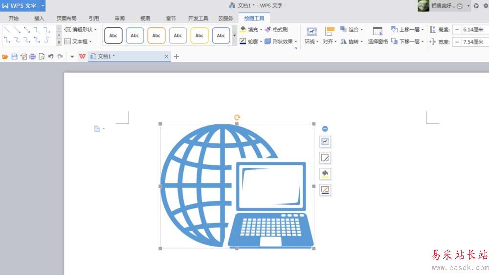 5、這個互聯網的圖形我們可以調整它的大小,方法是點擊圖形出現邊界的小點以后,點擊這些點進行拉伸就可以隨意更改圖形的大小