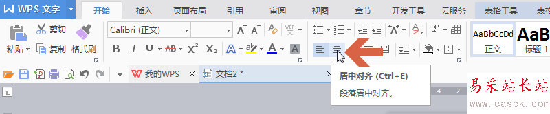 6、點(diǎn)擊【開始】選項(xiàng)卡中圖示的【居中對(duì)齊】按鈕。