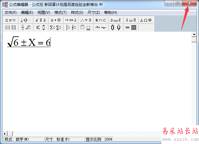 7、公式編輯的完成之后,進行點擊關閉即可。
