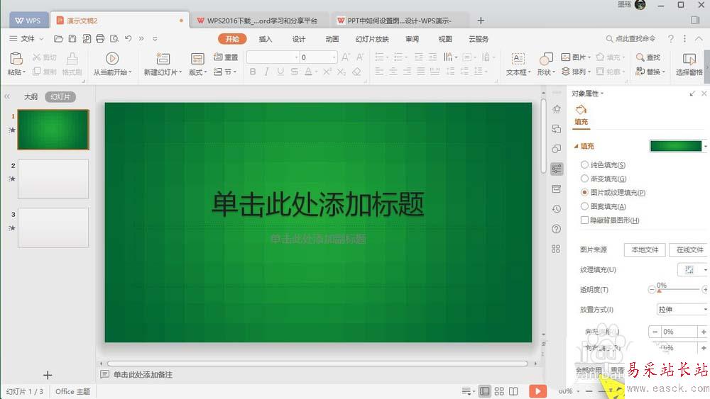 6、最后我們可以看到,這個幻燈片的背景,就是我們所設置的圖片背景,如下圖所示,