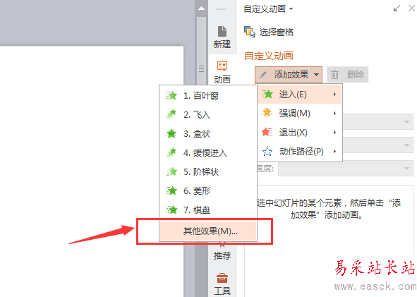 5、根據(jù)順序依次選擇(添加動(dòng)畫)--(進(jìn)入)--(其他效果)