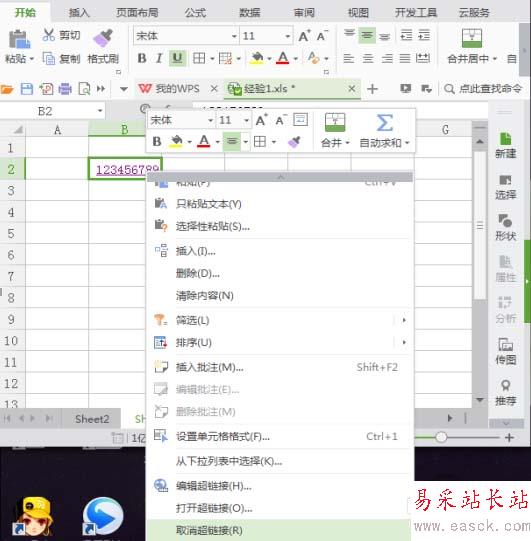 選擇數據,點擊右鍵,然后點擊-取消超鏈接(如圖);