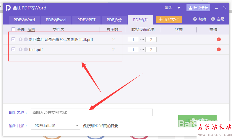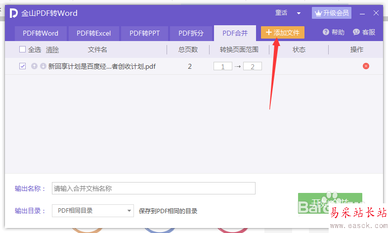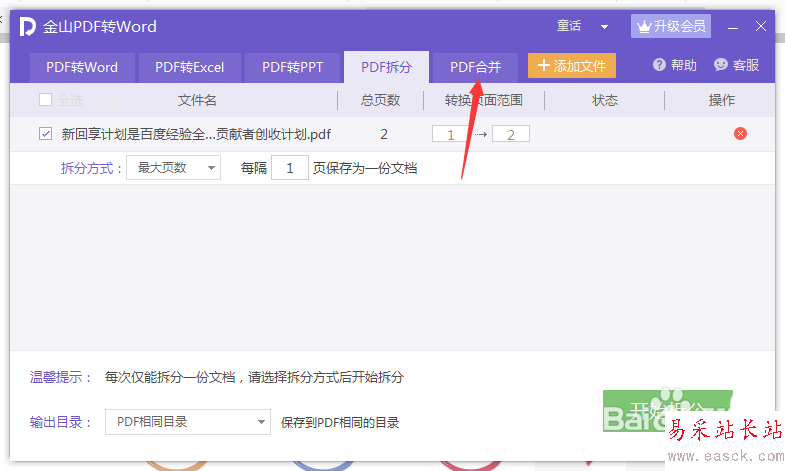 2、這樣就會彈出了一個pdf轉(zhuǎn)word的窗口中,進(jìn)行點(diǎn)擊pdf合并的選項。