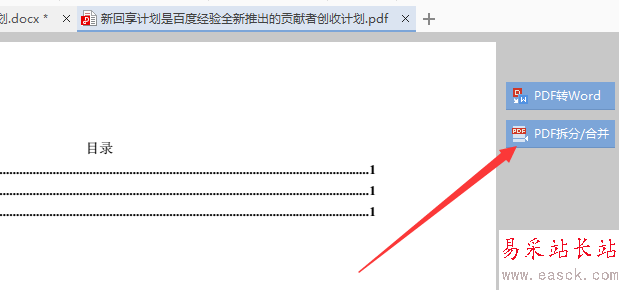 1、首先使用wps文字進(jìn)行打開一個pdf的文件,然后進(jìn)行點(diǎn)擊pdf拆分/合并按鈕。