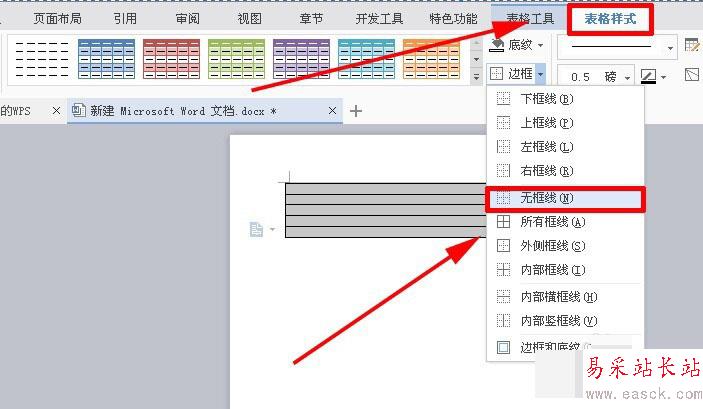 2、選中所有的表格,點擊工具欄中的“表格樣式”,再點擊“邊框”選擇“無邊框“,并把線的粗細設置為“1.5磅”。